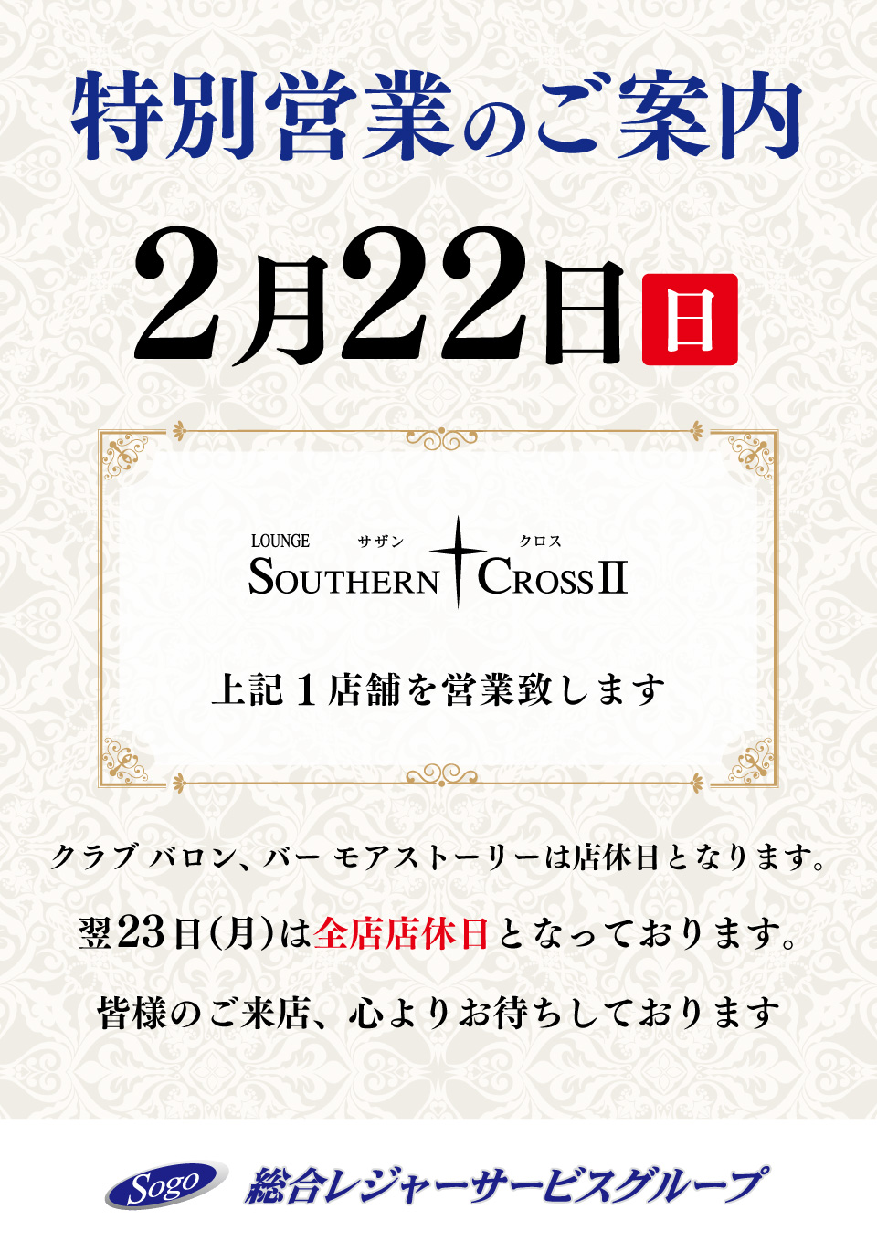 2月22日特別営業のご案内